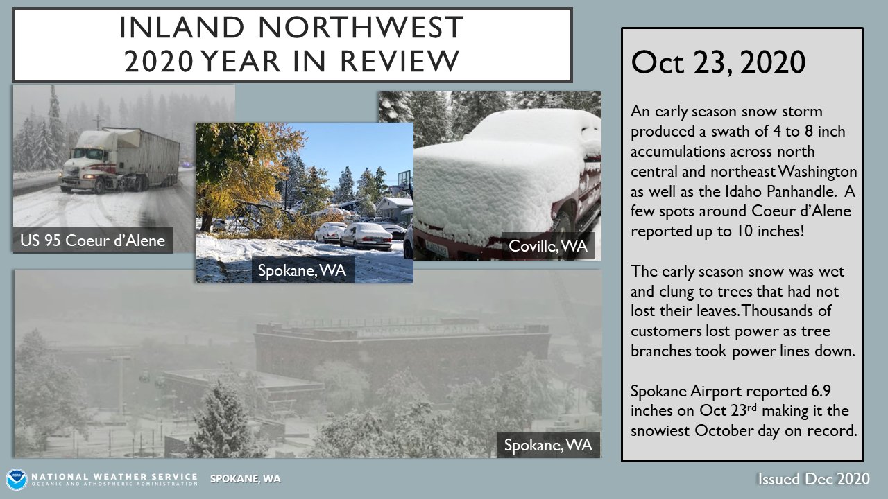 Nws Spokane On Twitter Inland Northwest 2020 Year In Review A Record Early Snowstorm Broke Tree Limbs Caused Power Outages And Produced Winter Driving Conditions On Oct 23rd It Was The